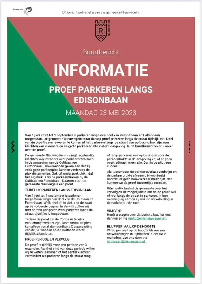 Op korte termijn, maandag 4 september 2023, starten de werkzaamheden voor de aanleg van de verharding rondom Rijnfort. Als eerste wordt begonnen met het verwijderen van de betonplaten aan de oostzijde (zijde Plettenburgerbaan), waarbij er gewerkt wordt vanaf de zuidzijde (Fultonbaan) richting de noordzijde (Perkinsbaan). Hierna zal de nieuwe definitieve bestrating aangelegd worden. Hiervoor moet eerst de bovenste laag verwijderd en afgevoerd worden en moet er zand en grond aangevoerd worden. Daarna volgt de bestrating. Deze werkzaamheden nemen totaal ongeveer 3,5 week in beslag en zijn rond woensdag 27 september afgerond. De entrees aan deze zijde zijn in deze periode tijdelijk moeilijk/niet bereikbaar.